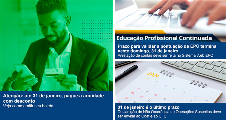 Atenção: até 31 de janeiro, pague a anuidade com desconto Veja como emitir seu boleto |