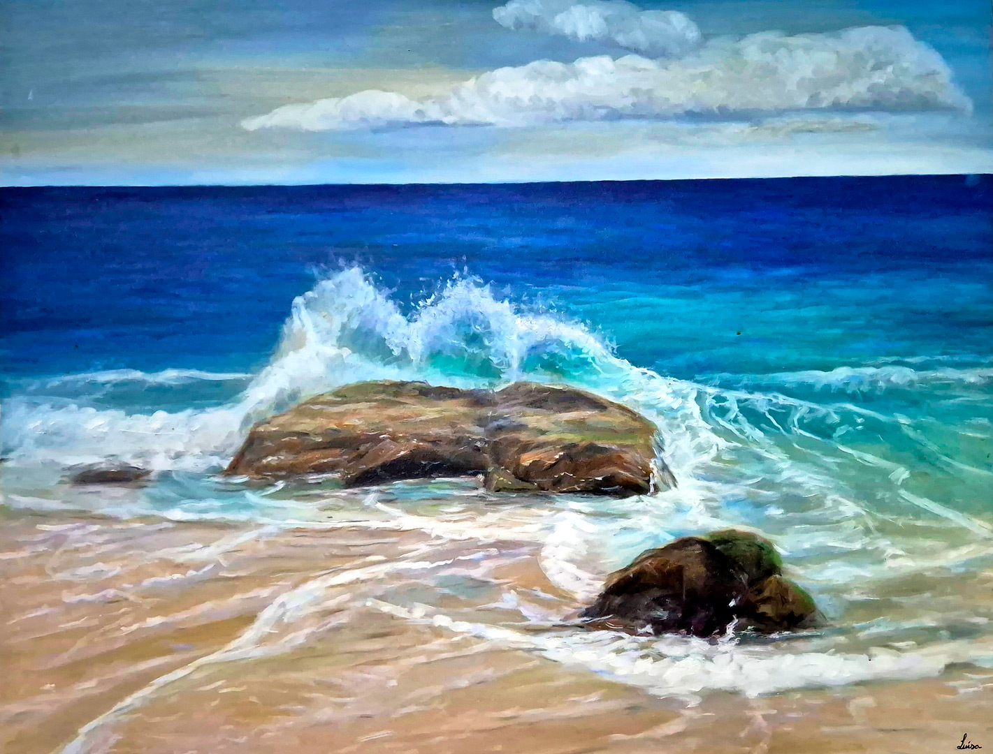 Em uma interessante versão, o mar, que é patrimônio de todos, mas que realmente não pertence a ninguém, é tão magnificamente representado através da criatividade da jovem Luíza Mathey Settani, que segue com vivacidade seu próprio imaginário e sua grande sensibilidade.